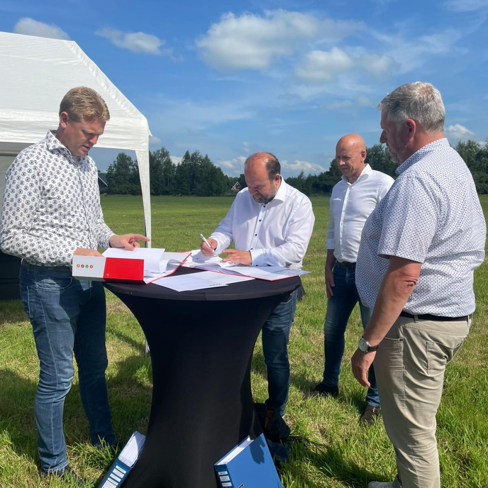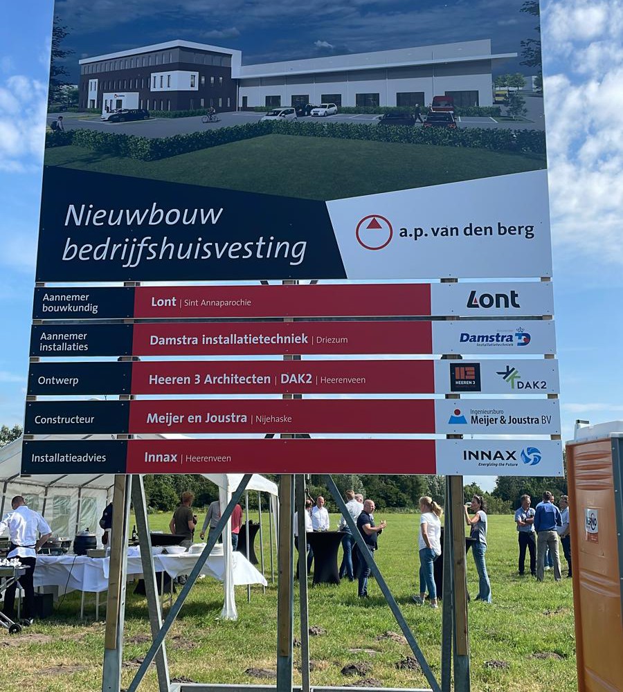 Gisteren waren commercieel directeur Teake Damstra en projectleider Robert Vloedgraven aanwezig bij het ondertekenen van het contract voor de nieuwbouw van het kantoor met hallen en werkplaats van A.P. van den Berg in Heerenveen. Voor dit project verzorgen wij de gehele E en W installatie.