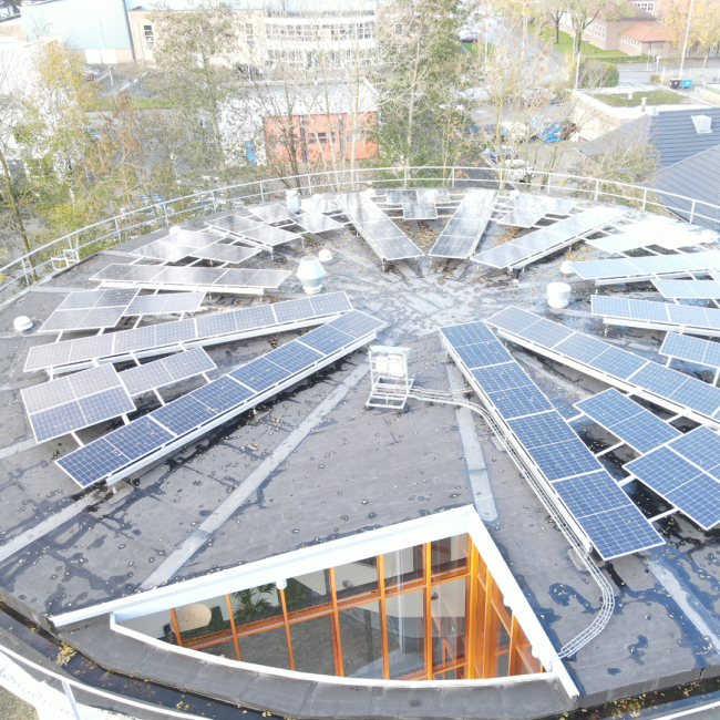 In 2023 heeft Damstra Duurzaam een unieke uitdaging aangepakt bij Snakeware in Sneek. Er zijn 69 zonnepanelen in een ronde vorm op het dak geplaatst. Door deze bijzondere vorm was er een creatieve benadering nodig om de ruimte optimaal te benutten en de energieopbrengst te maximaliseren. Wij hebben een op maat gemaakte oplossing kunnen realiseren, waardoor Snakeware nu efficiënt gebruik kan maken van duurzame energie.