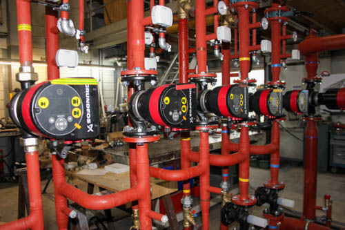 Voor het verwarmen van het pand zijn twee warmtepompen toegepast welke in de techniek ruimte zijn opgesteld. In de winterperiode maken de warmtepompen aan de ene zijde warmte, welke via de verdeler en buffervat naar de diverse vertrekken wordt gevoerd, en aan de andere zijde van de warmtepomp wordt tegelijkertijd koeling door 24 gesloten lussen opgeslagen in de grond.