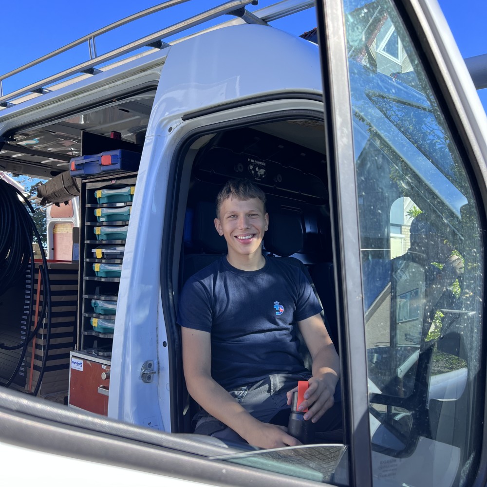 Officieel heeft hij nog vakantie, maar de 17-jarige Cédric van der Galiën is al lekker op pad met zijn collega’s William en Harwin. Cédric is in juli aangenomen als vakantiekracht. “Ik heb hier stage gelopen en dat beviel zo goed dat ik graag wilde werken bij Damstra”.